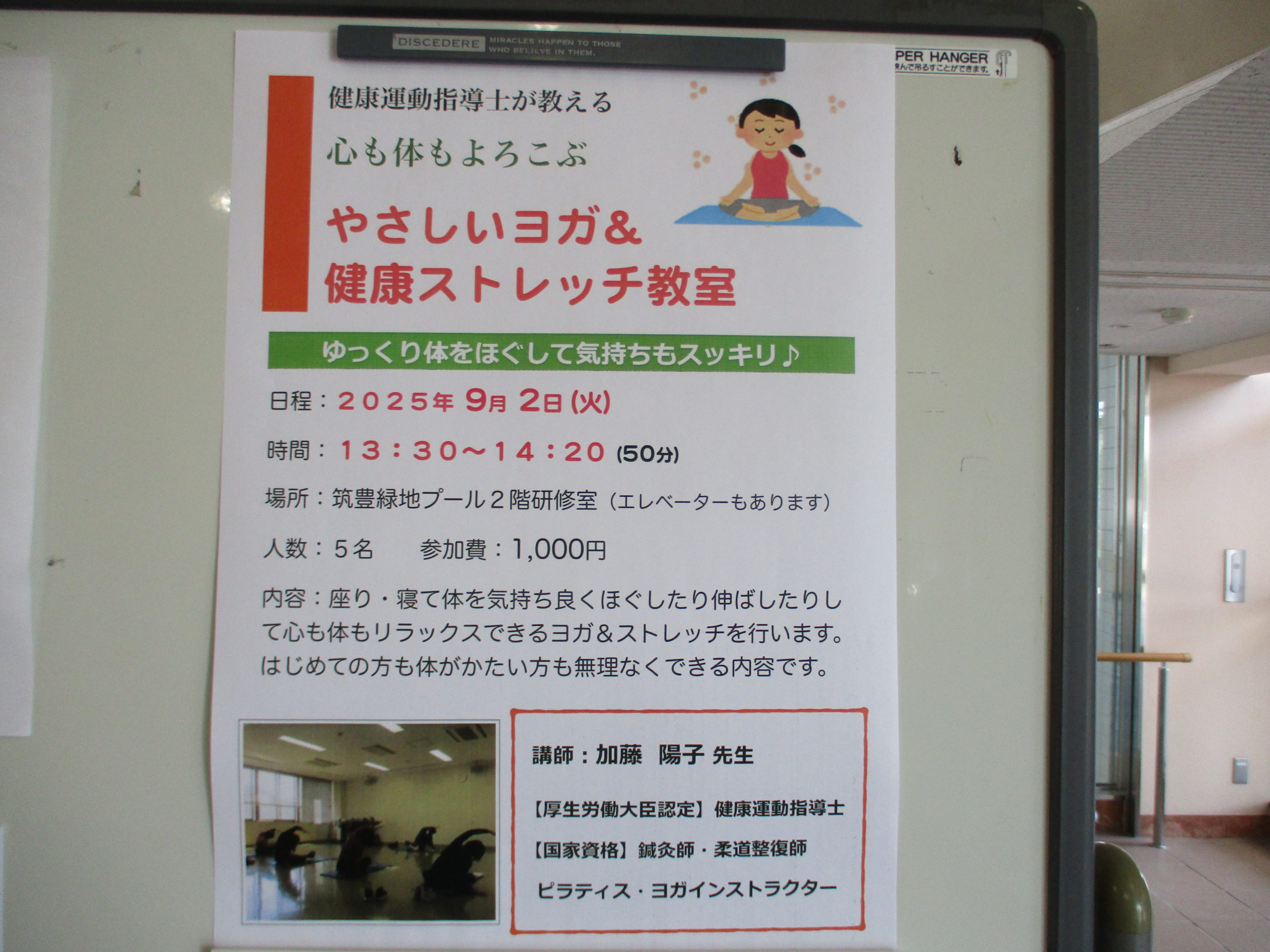 ヨガ・健康ストレッチ教室 9月2日(火) 13:30~14:20 (50分)