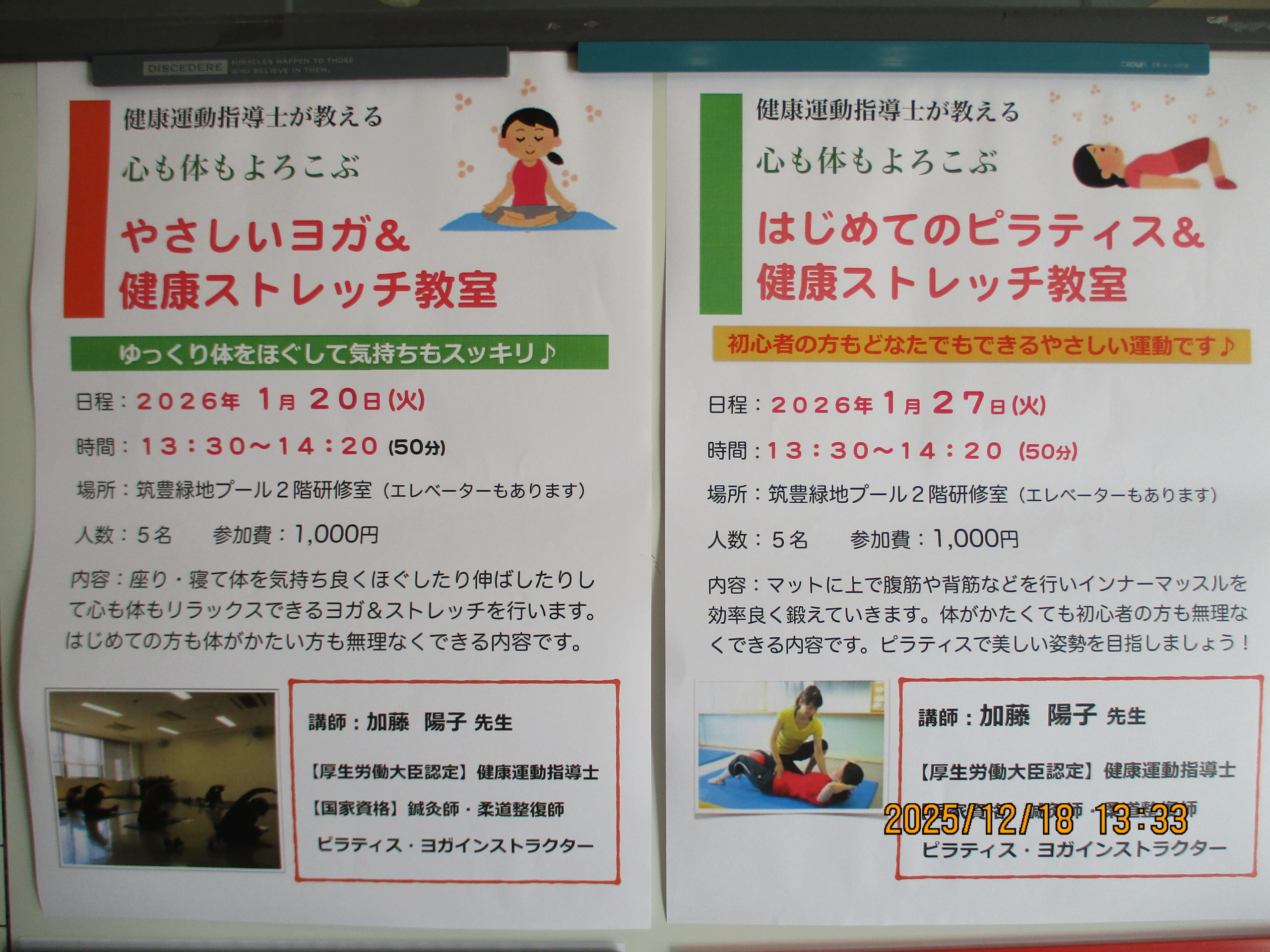 1月 初めてのヨガ&健康ストレッチ教室 はじめてのピラティス&健康ストレッチ教室